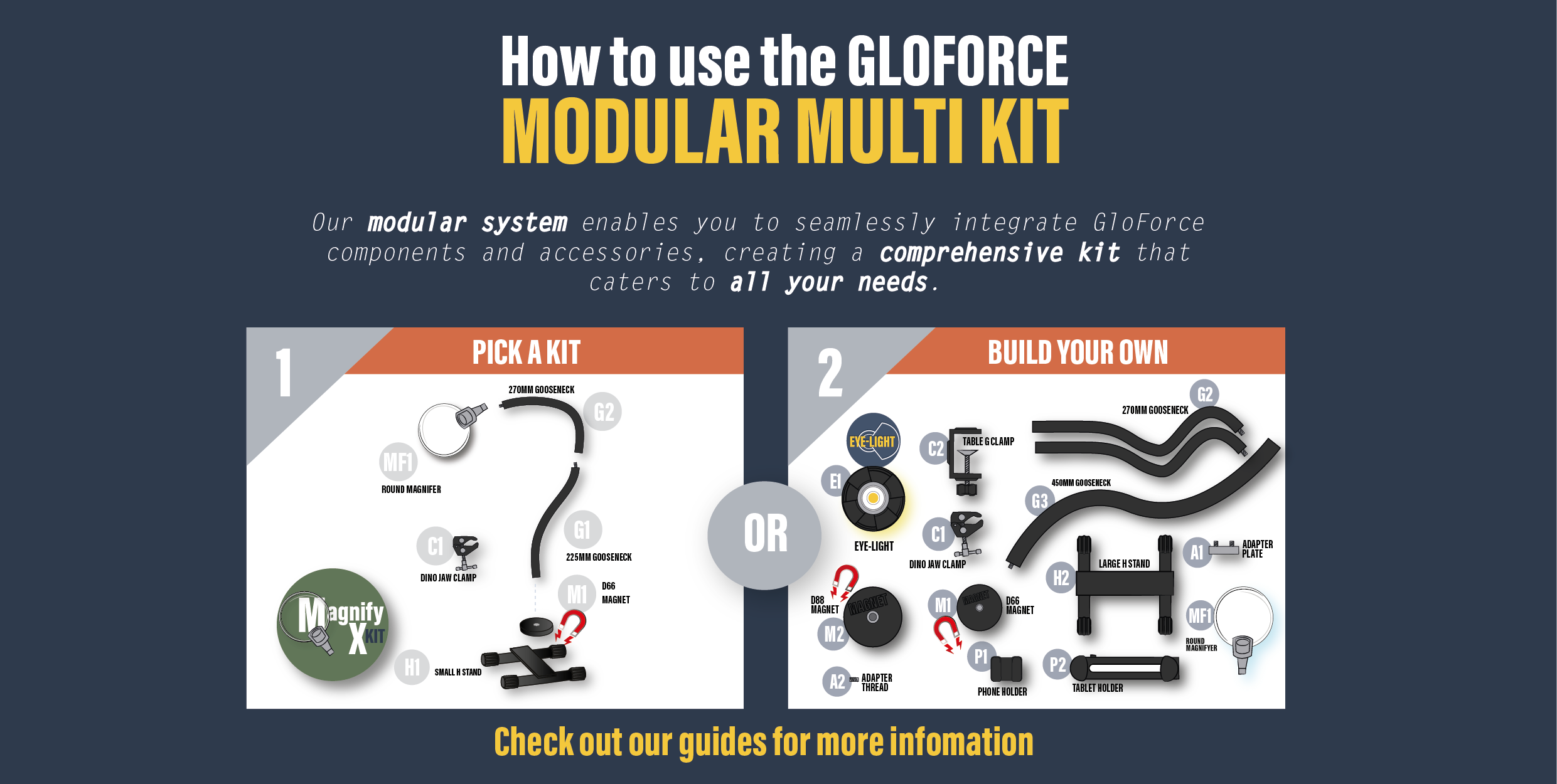 GloForce is not just about lighting; it's about convenience. To augment your experience, we've incorporated holders for your phones and tablets, and recently launched our MAGNIFY range of magnifying glass as Our modular system enables you to seamlessly integrate these add-ons, creating a single comprehersive kit that caters to all your needs.