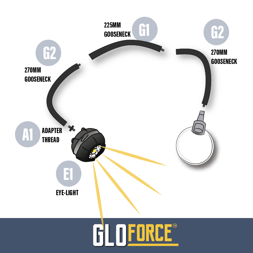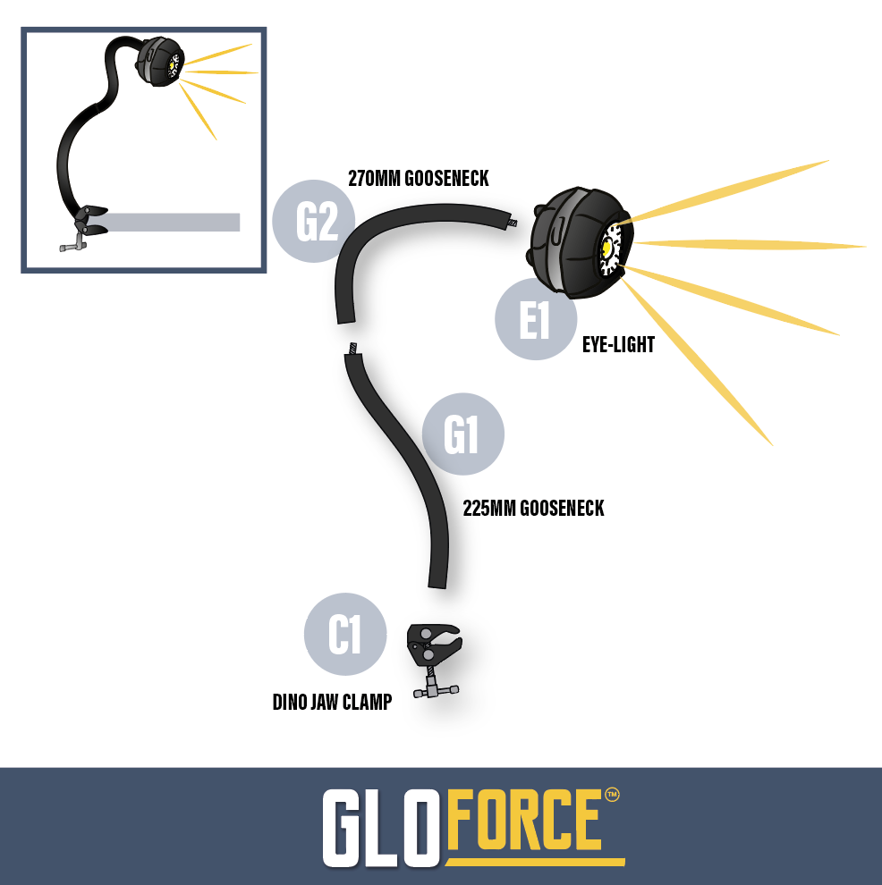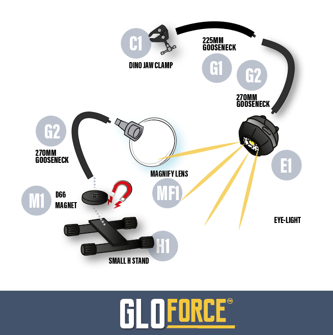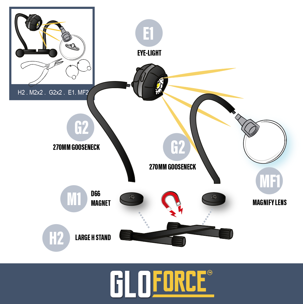 Combo Kit 1 - THE MAPLE allows you to independently adjust both the EYE-LIGHT and magnifier to suit your tasks. Ideal for hands-on work, it’s a simple yet powerful solution for seeing every detail just right. Plus, it even doubles up as a handy phone holder.