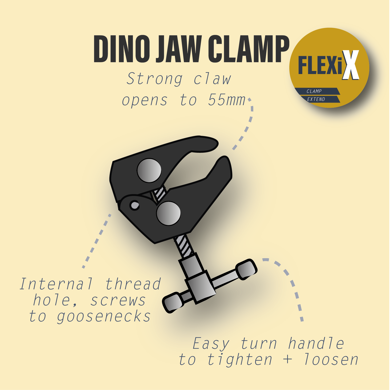 Expand your lighting capabilities with the Flexi-X Kit. It builds upon the Flexi Kit with an additional 225mm Gooseneck for extended reach and a versatile Dyno Jaw Clamp for diverse mounting possibilities.
